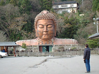 夜道でクルマのライトに照らされ出現した日には、かなりビックリである。しかし、周りにはいくつか住居があったが、大仏はごくフツーに存在してとけ込んでいた(ように見える)。この大仏の頭部分、既に15mあり最終的には高さ33m、奈良の大仏の2倍の大きさを予定しているという。恐るべしハニベ。
